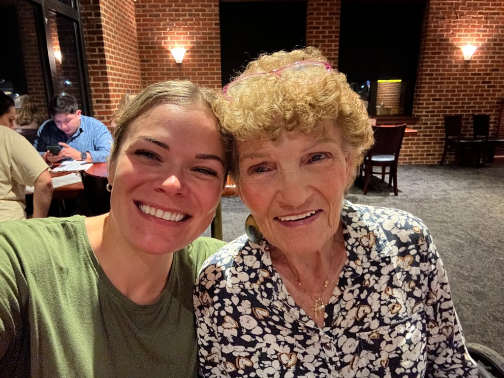 Friday was the big surprise. My mom and sister took my grandma out for lunch, and I hid around a corner and jumped out to surprise her. She said I “shocked the hell out of her!” 😂 She was so happy, and we both cried!