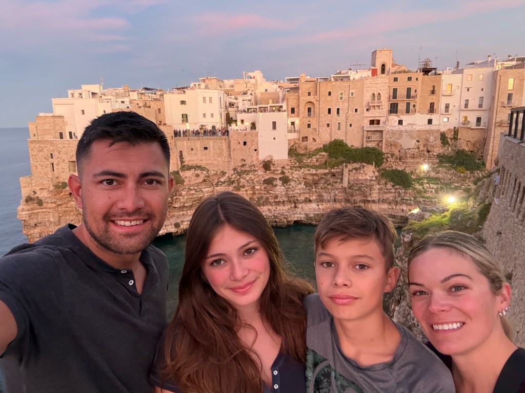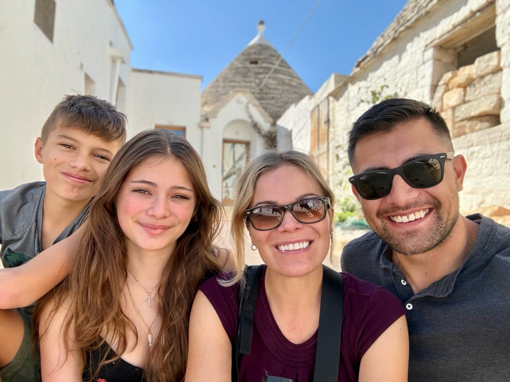 After taking many photos, we hiked back down and stopped for drinks at a cafe. The kids had frozen lemonades, and I had an Aperol Spritz. We were only a little hungry, so Ryan got a small orecchiette pasta, which is native to this region, and Matt and I had a mozzarella Caprese. The fresh mozzarella is also native to the Puglia region, and we both thought it was the best we had ever had.
