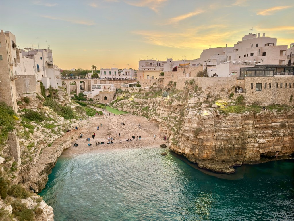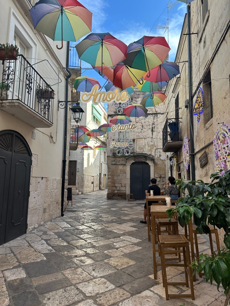 We returned to the car and started traveling toward our hotel in Polignano a Mare. We stopped in Altamura for its famous bread on a friend’s recommendation. Every restaurant we saw in Matera and Altamura even had a loaf of bread out front on display. We found the renowned bakery, Antico Forno Santa Catarina, which has been in business since 1391. They still use the same brick oven from that era. Sadly, by the time we arrived at 4 p.m., all the bread on the shelves had already been “reserved.” We did buy some cookies, though, and continued the journey to our rented apartment.