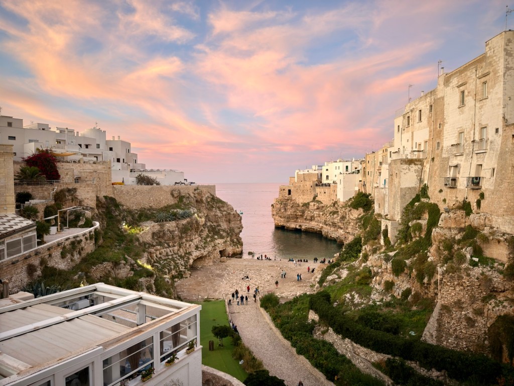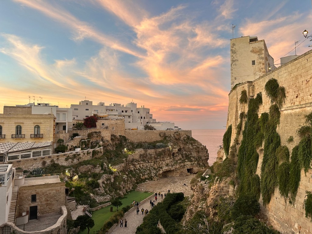 After our naps, I rushed the family back out of the apartment to head into Polignano a Mare because I wanted to take pictures in the daylight. There wasn’t much sunlight left in the day, so I only got a few before the sun started setting, but it turned into one of the most beautiful sunsets we’ve ever seen. There were so many shades of orange, pink, and purple! As the sun continued to set, I dragged the family from viewpoint to viewpoint, trying to capture photos from every angle, and it really paid off!