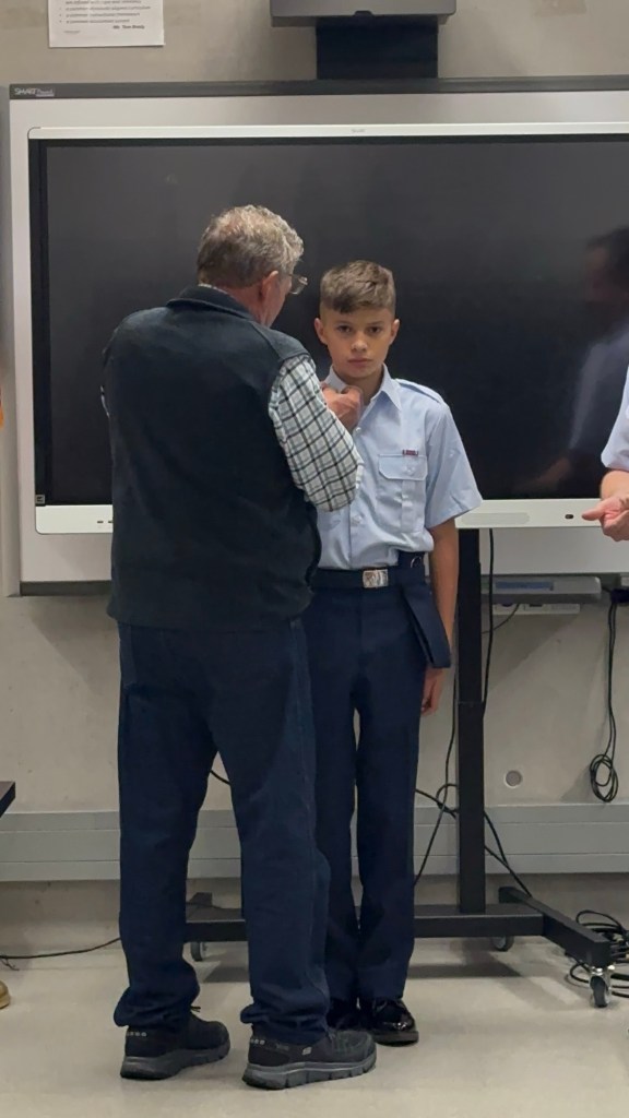 Tuesday was another big night for Ryan: he was promoted again in Civil Air Patrol to Cadet Airman First Class. It was extra special because it coincided with my parents’ visit. Ryan asked if one of them could pin on his new rank, and my Dad won the coin toss. We are all so proud of Ryan!