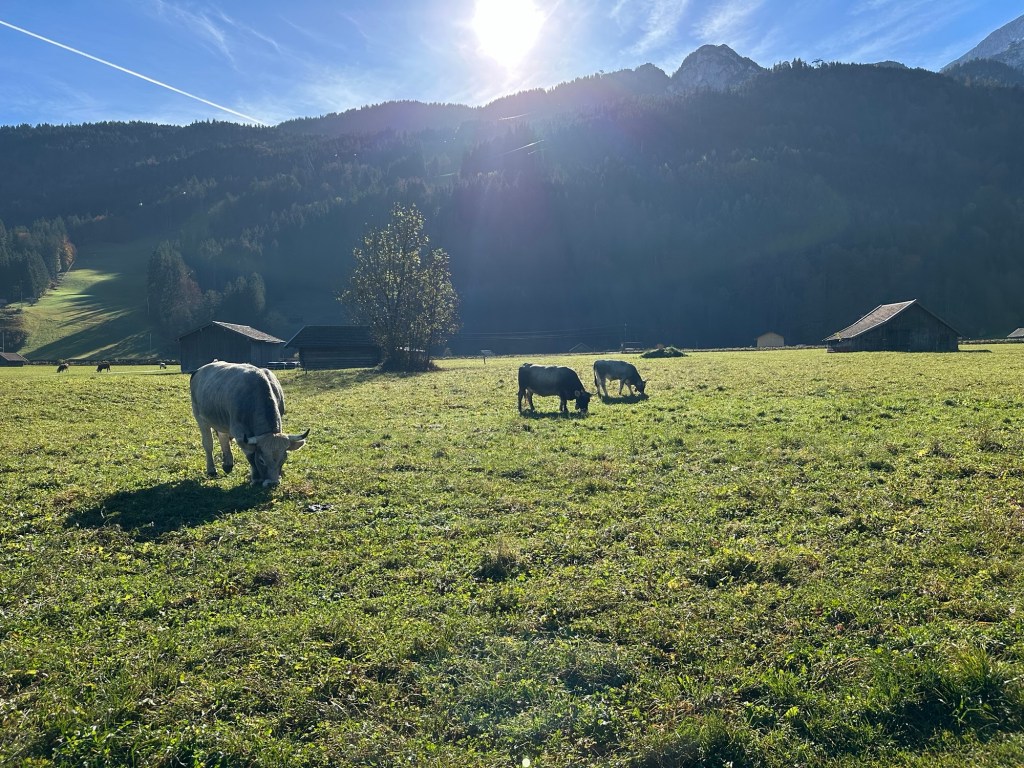 We chose Lake Eibsee because I had seen pictures of the beautiful fall foliage a few weeks earlier and wanted to see it for myself. The route from the hotel first took us through a beautiful pasture overlooking the Alpspix mountain. The cows were in the meadow, and all we could hear were cowbells; so pretty! Many other people were hiking, biking, and enjoying the lovely weather.