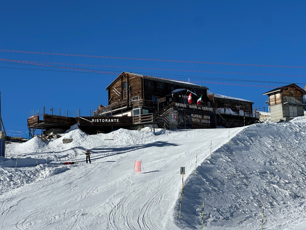 We eventually made it all the way back to where we disembarked from the Zermatt gondola. The total journey took over an hour! Our next destination was the Trockener Steg ski lift area at the top of the chairlift. We made a couple of trips up, skiing back down before we decided it was time for lunch.