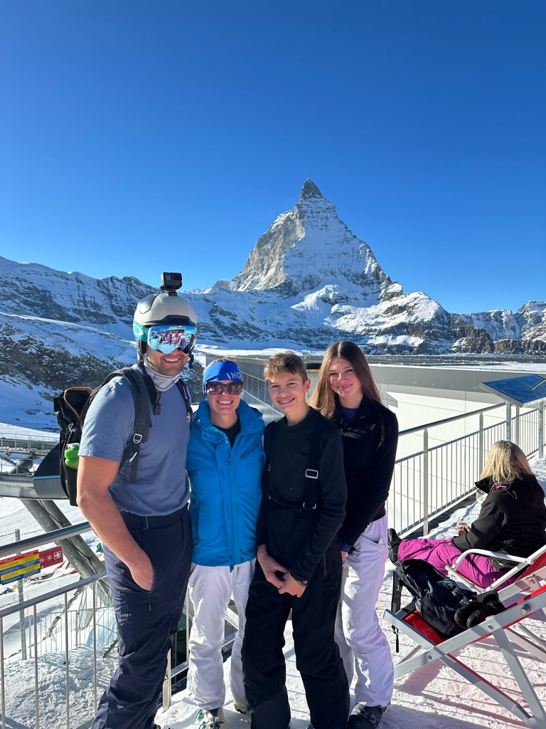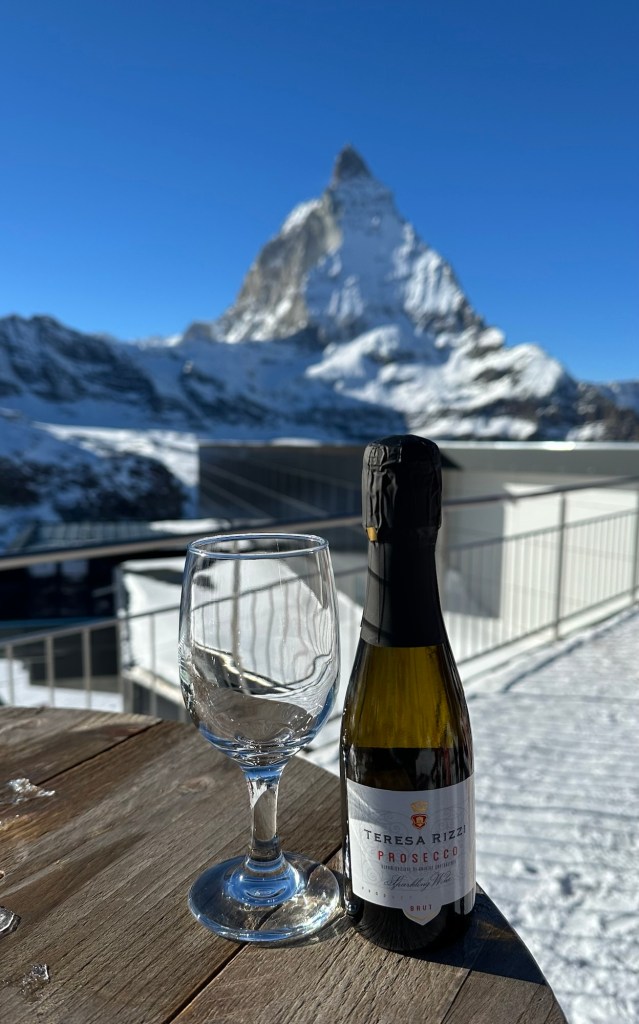After lunch, we decided to do the Italy loop one more time. Again, we took the gondola to the Klein Matterhorn peak, skied to Italy, and then back down to the Zermatt gondola. Matt and the kids made a final loop on the Trockener Steg while I had a prosecco break on the terrace. It was a great way to wrap up the day!