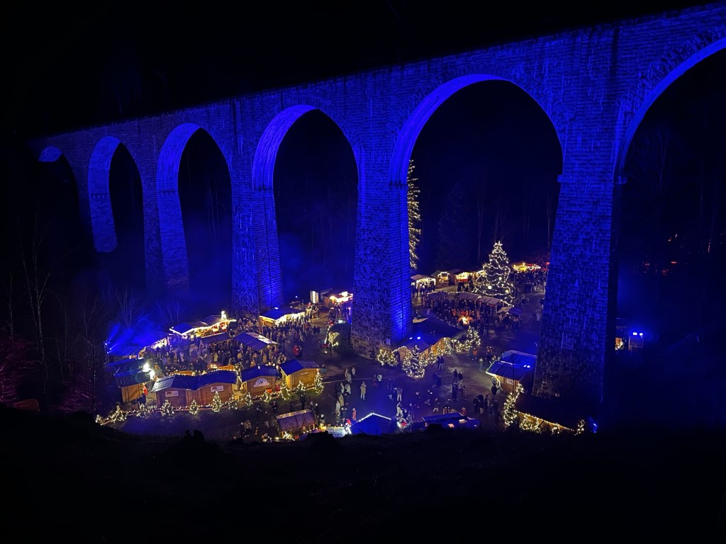 Our final stop on Saturday was the Ravenna Gorge Christmas market. This one is really special as it is located in a river gorge under the archways of a train bridge.