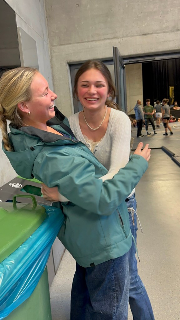 We had some special visitors this week! Our dear friends and neighbors from Maryland, Kathy and Elsie, came to spend a week skiing and catching up with us. We chugged along through the week until Thursday when they arrived at lunchtime. They returned to our house for a nap until school was out, and then we went to the school to surprise the kids and Matt.