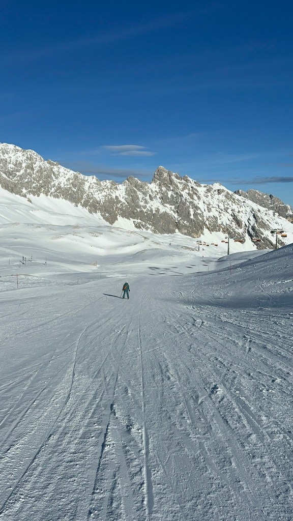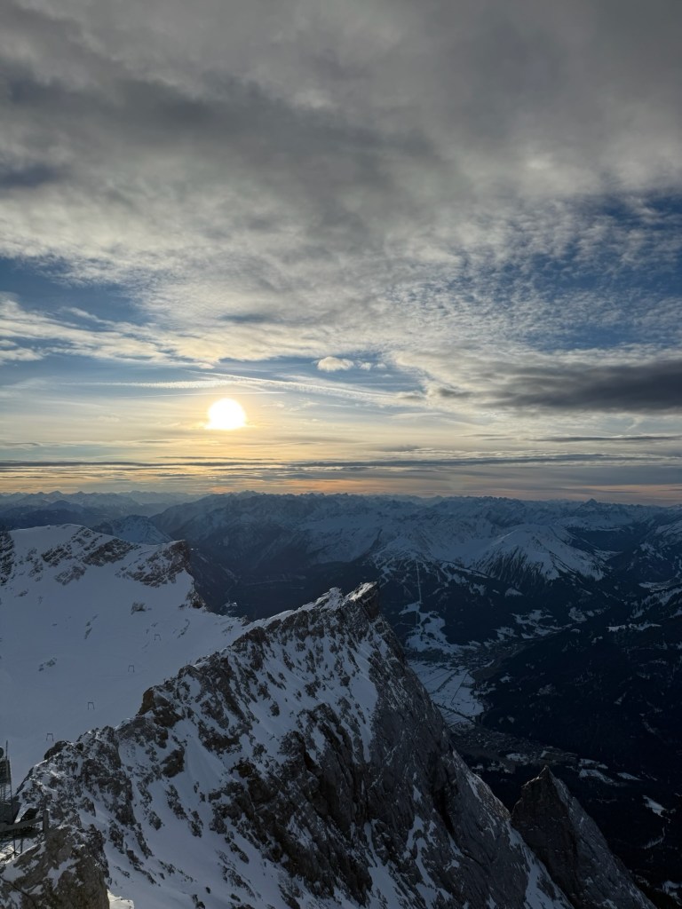 Our skiing destination for Friday was the glacier on top of Zugpsitze, Germany’s tallest mountain. We have visited the viewing platform on top before but never skied there. It’s a bucket list skiing destination for many people and has also been on our list for a long time, so we were excited to cross it off.