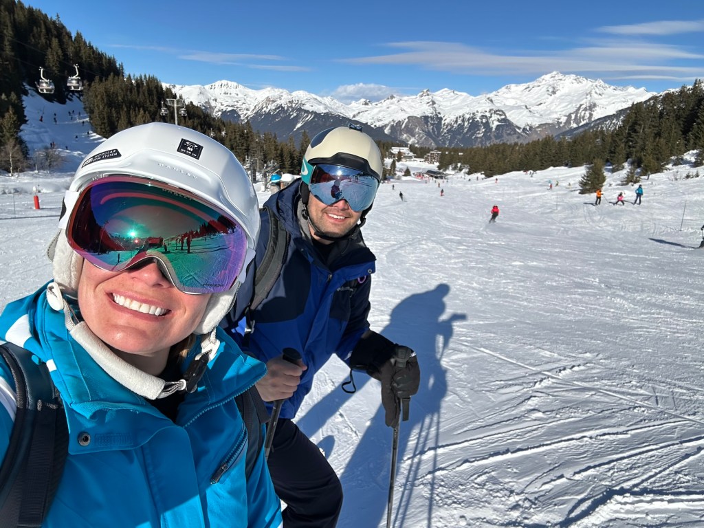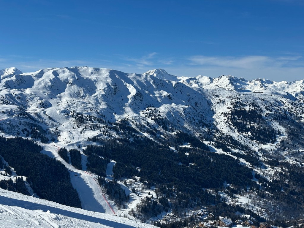 We arrived in Méribel by 10:30 and found the perfect parking spot at the base of several lifts. To start our day, we took a lift up to a blue run and found the snow super icy and hard-packed—not ideal skiing conditions! We were fortunate with the weather, though; it was a beautiful, clear blue-bird day with no wind!