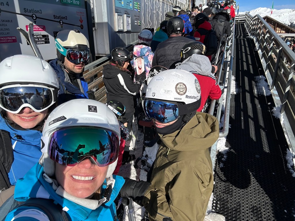 It was also much more crowded, and we needed to wait over 20 minutes to get on the first gondola. Once we reached the top, we discovered amazing skiing conditions and much gentler blues and reds. It was awesome! Also different at Courchevel were the paparazzi waiting at the top of all the lifts. We guessed they were just waiting for a celebrity to get off, not that we saw any during our time there.