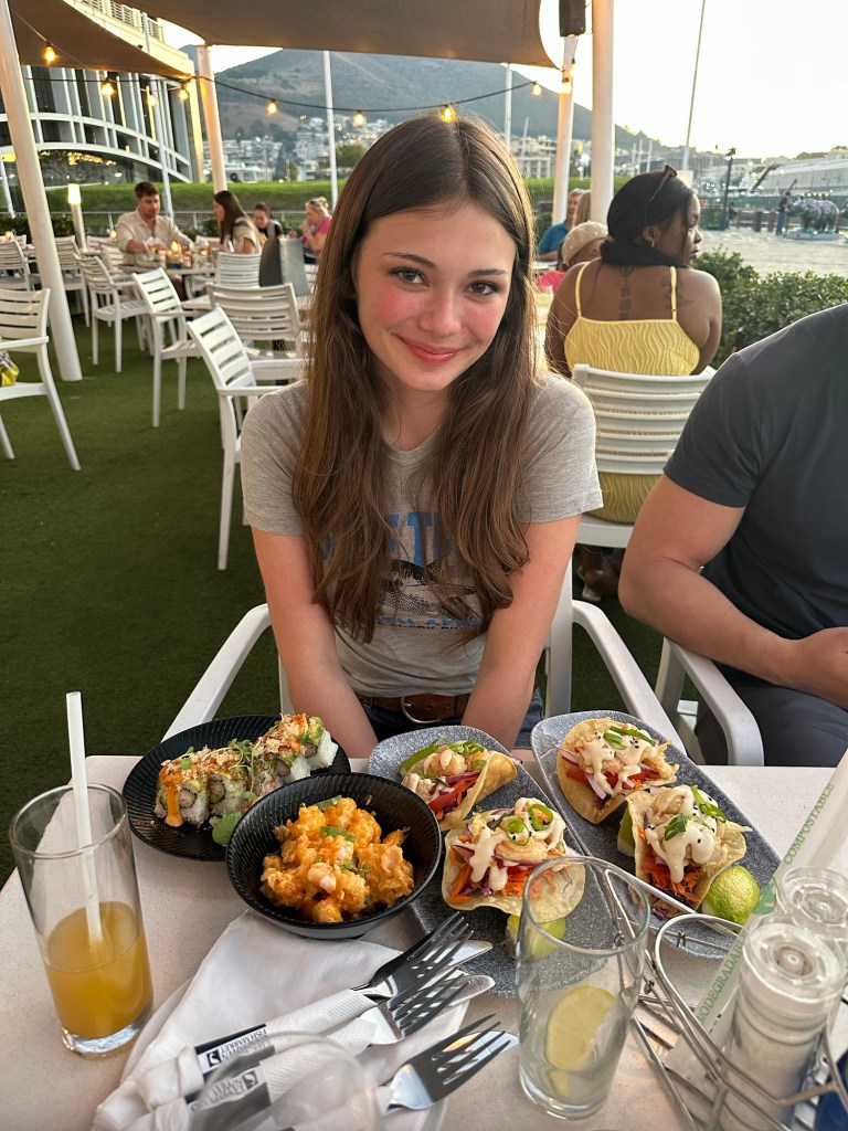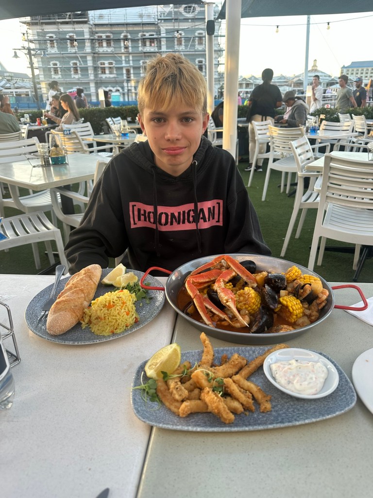 But then it was time for dinner, and we decided to go back to the Cape Town fish market again because the night before had been so good. We all switched up our dishes and had a chance to try things we hadn’t had the night before. It was so good!