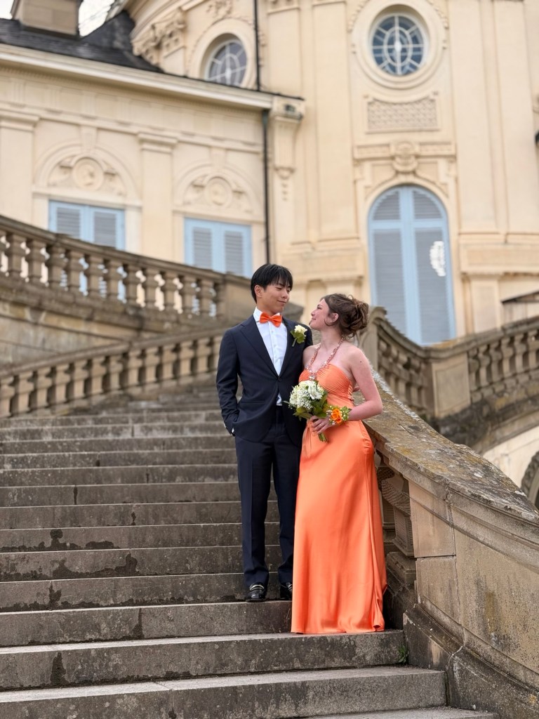 It was time to rush Brooklyn home as soon as the games were over. It was also prom night! No hot water at home meant we had to start by dropping her off at the neighbor’s for a hot shower. Then, she came home and finished getting ready. Once that was done, we got back in the car and drove to Schloss Solitude, where Brooklyn, her date Kenneth, and her friends were taking pictures.