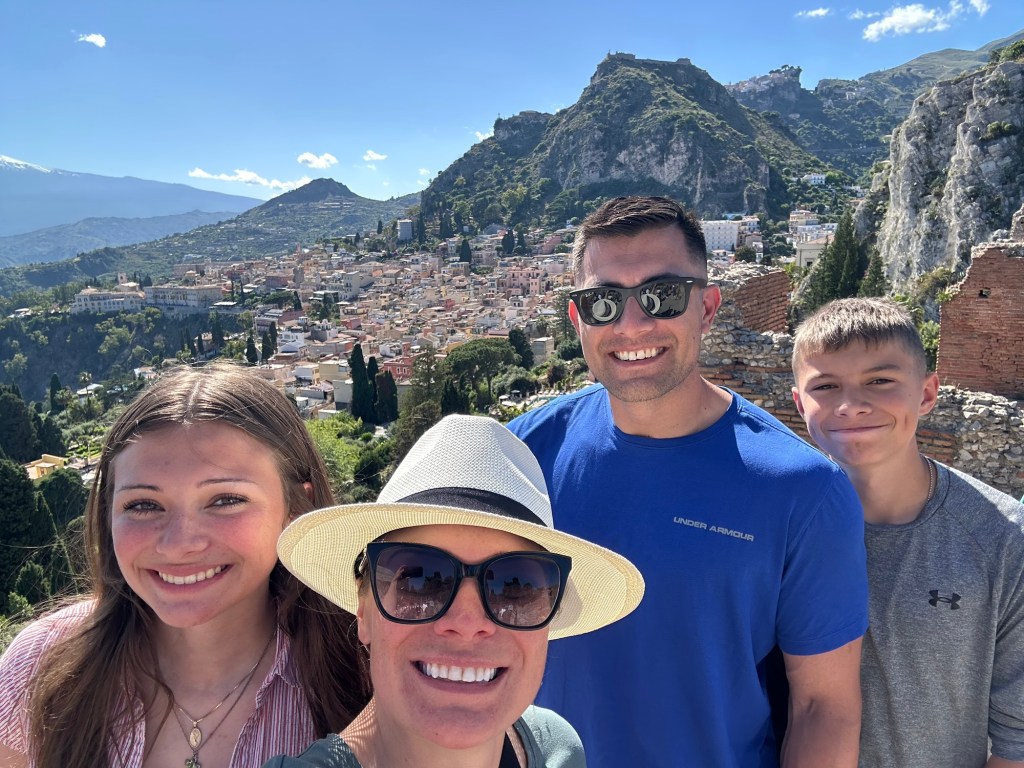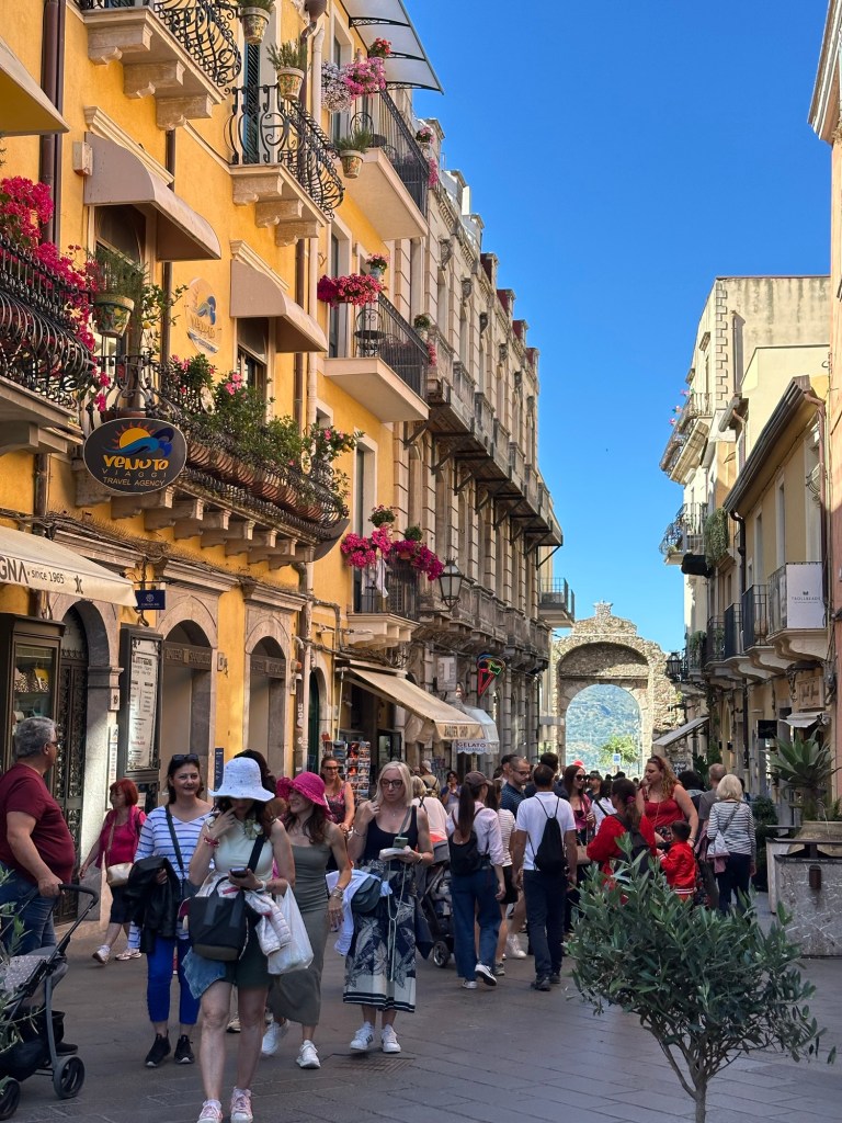 Our next stop was Taormina, a hilltop town on the Mediterranean coast. Usually, we would split these two outings into two days, but we told the kids we could stay at the hotel pool all day the following day if we could cross both off our bucket list on the same day.