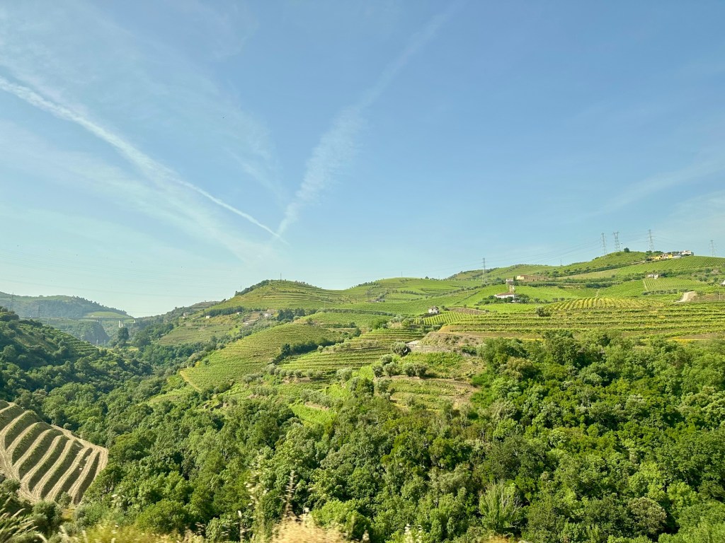 The Sahara dust was still heavy in Porto, but it thinned out as we headed further inland. The guide explained that the Duoro River Valley has its own microclimate. It experiences nine months of winter and three months of “hell” when the temperatures reach almost 120°F. This is due to the mountain shielding the area from cool weather or breezes from the ocean. As it turns out, it also protects the area from the Sahara dust. We had a hard time imagining that kind of heat in Europe but were glad to get at least a break from the dust, which was keeping us all sneezing.