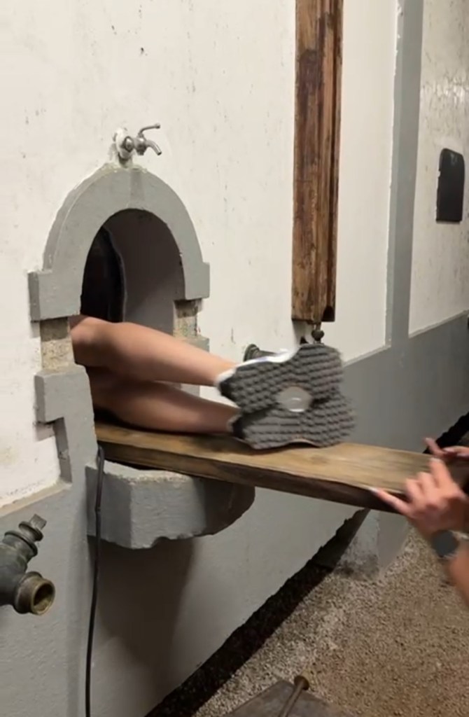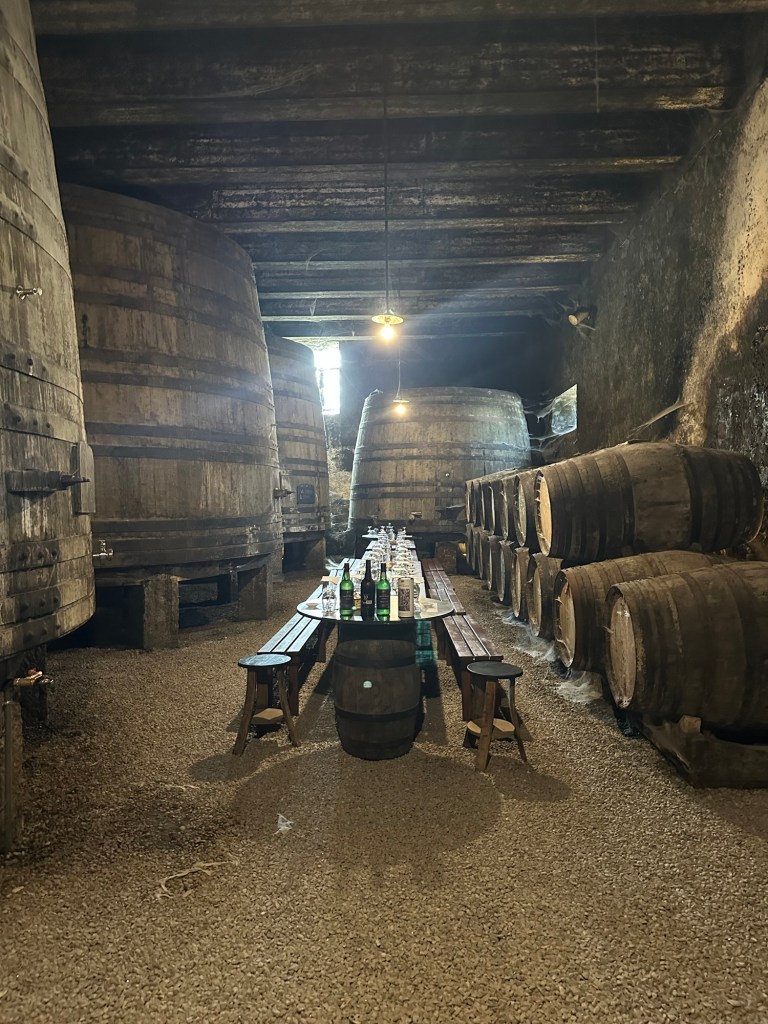 They asked the group for volunteers to climb into the wine vat. I eagerly volunteered and had to lay on my side on a flat board and then be pushed through the small opening. Once I was in, I immediately needed to get out because of claustrophobia 😂.