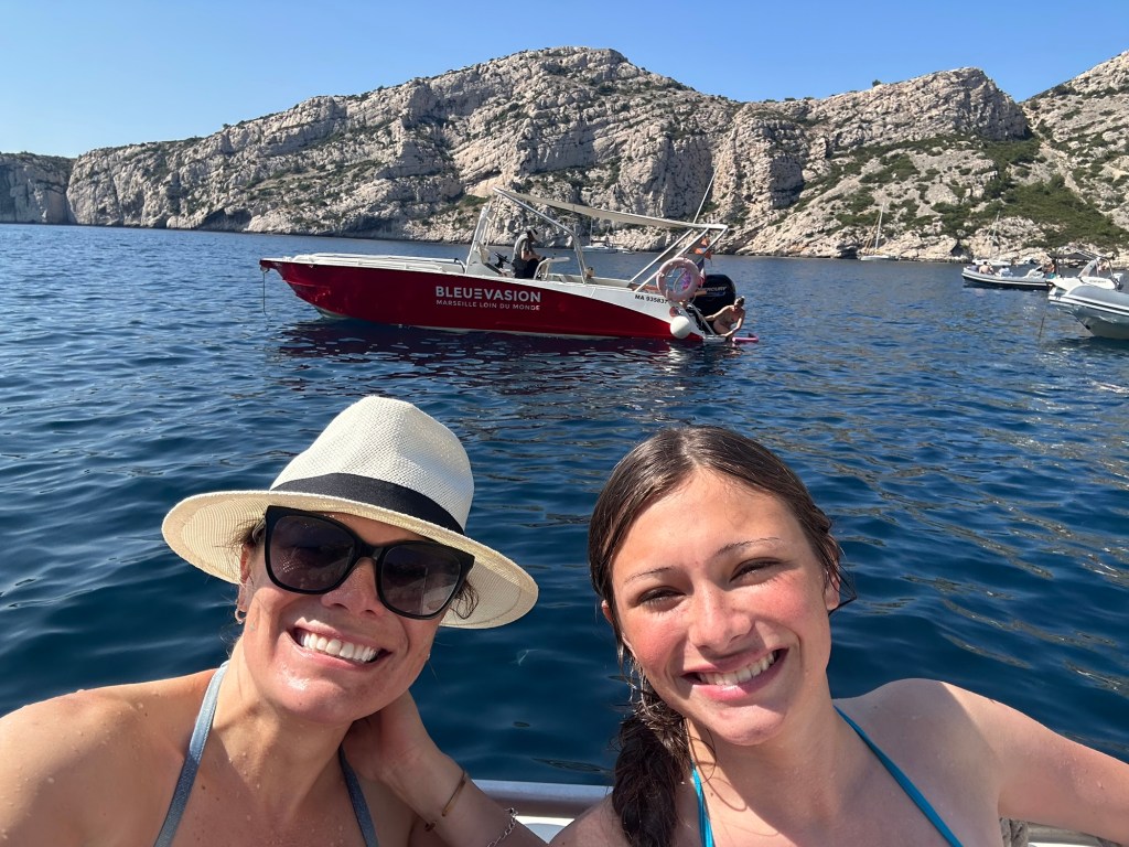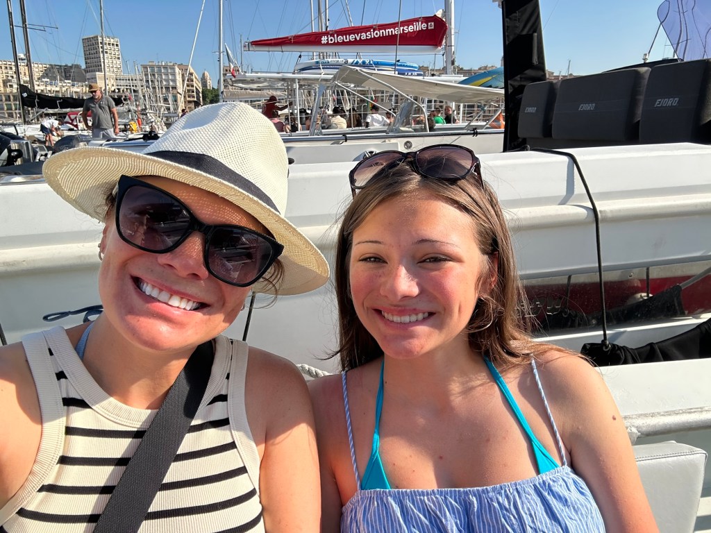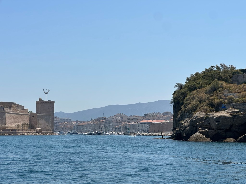 Thursday, we got up relatively early again and walked down to Marseille’s Vieux Port, or “Old Port.” We had booked a boat tour of the Calanques National Park. The port itself was only five minutes from the hotel, but I did not expect it to be so huge. There must have been more than 1000 boats in the harbor. Once we reached the port, we still had a 15-minute walk within the harbor to find our boat. Thank goodness we allowed for extra time!