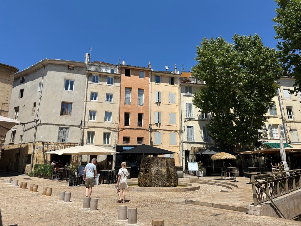 The next stop was Aix-en-Provence, just a thirty-minute drive from Marseille. Aix is a pretty, pastel spa town famous for being the birthplace of the impressionist painter Cezanne and the setting of the book ‘A Year in Provence.’ It’s been on my travel list since I saw it on a travel show almost twenty years ago. We almost made it here in 2017, but our plans were derailed by a broken-down car, so I was so happy to finally be able to visit.