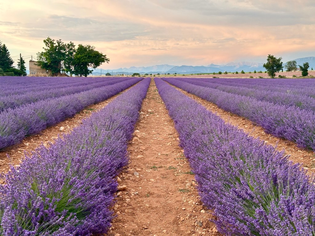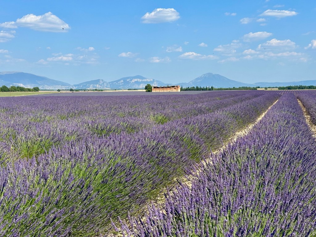 Then it was back to the car. Our final destination was where we would stay the rest of the weekend: Moustiers Sainte Marie, deep in the Provençal countryside. Our drive would take about two hours, and when we were about 30 minutes away, we drove through Valensole, where we found the lavender bushes in full bloom! The lavender doesn’t usually bloom until early July, and since that was still two weeks away, we were lucky even to catch a single blossom.