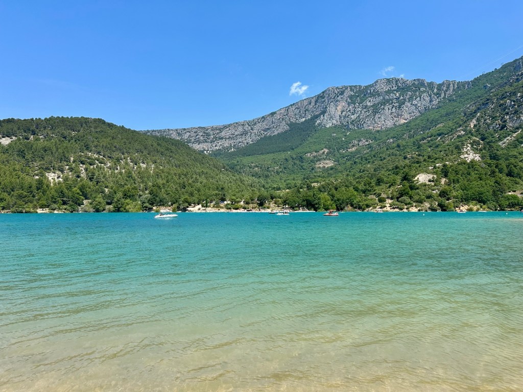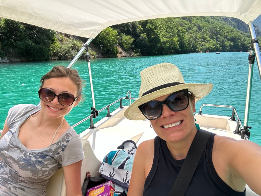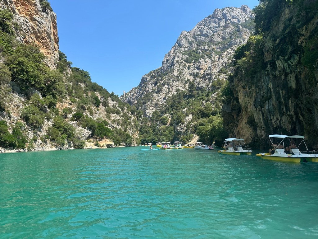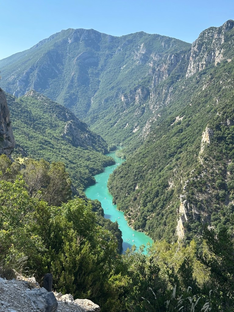 Friday morning, we let ourselves sleep in a little before heading out on that day’s adventure: the Verdon Gorge. The drive only took about 10 minutes, and we quickly reached the Pont Galeta, a famous viewpoint of the Gorge. The bright sun reflected off the limestone, making the water a bright turquoise.