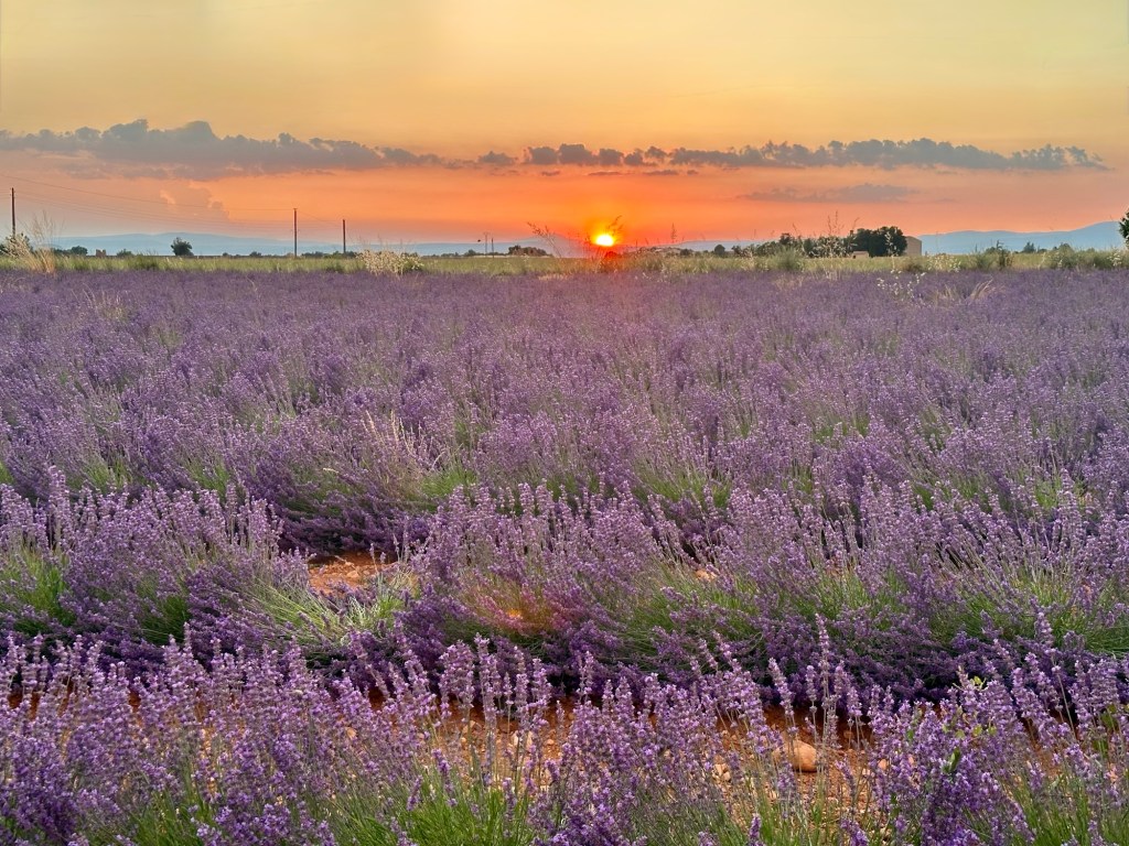 When we left the restaurant, it was about 8 p.m., and there was still over an hour until sunset. We decided to drive back to Valensole and take sunset pictures in the lavender fields. Once we got there, we still had to wait a while for the actual sunset, so we got a lot of great pictures with the golden hour lighting.