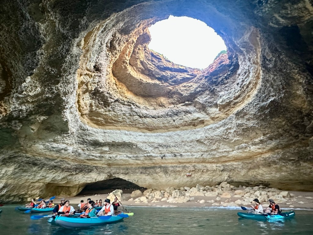 The next morning, we were up bright and early again. This time we were going to Benagil to kayak to the world-famous caves. We were on the first kayaks of the day at 7 a.m. A friend recommended going early to avoid crowds entering and exiting the caves and on the water and this ended up being great advice.