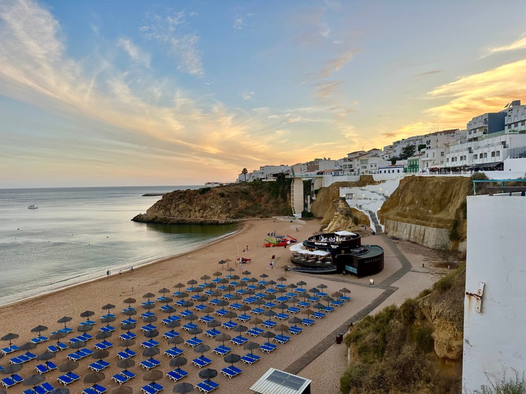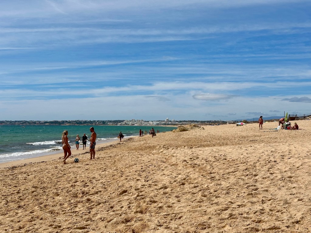 When we finally got there, we found some loungers with umbrellas, which were great. Ryan headed straight to the water and came back really quickly, exclaiming about how cold it was. We came here in late August because so many friends I talked to about the cold water in Portugal, and we thought it would be warmer. Because it is the Atlantic Ocean and we are pretty far north, it doesn’t actually warm up. It’s a shame because we really loved the Algarve so far and wanted to love the sandy beach!
