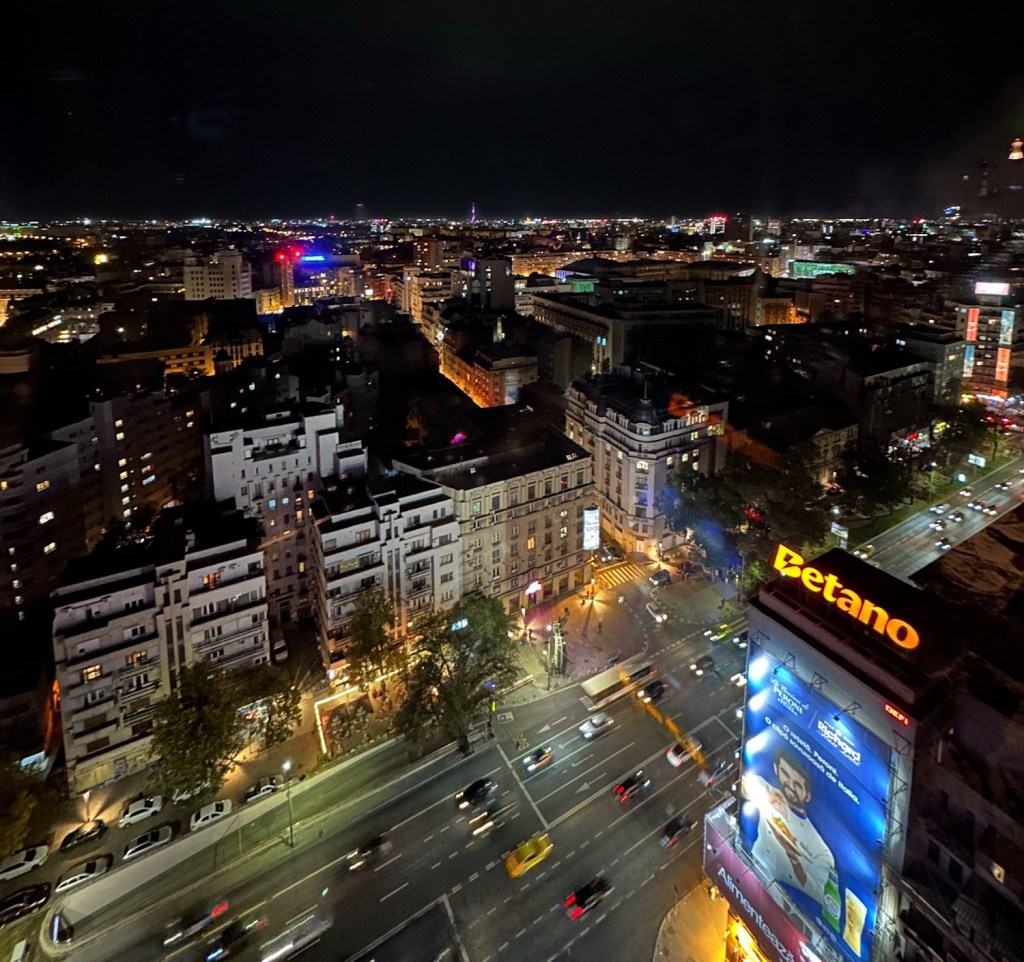 We had dinner at the Sky Lounge, located on the top floor of the Grand Hotel Bucharest. The food and cocktails were excellent, and the views were stunning.