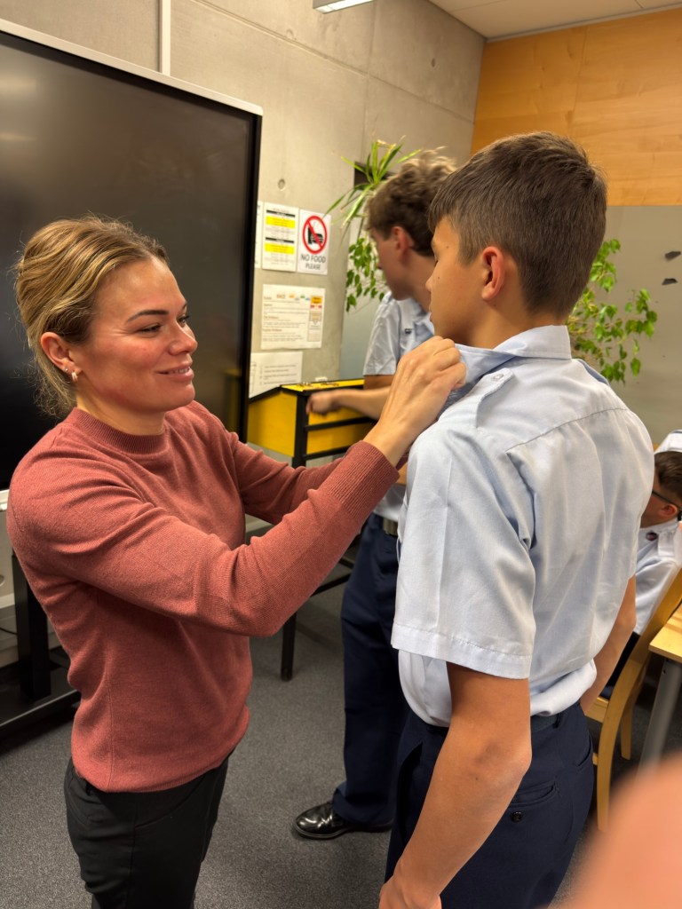 On Tuesday, Ryan received another Civil Air Patrol promotion. They had gotten backed up over the summer so it feels like he is receiving a new one each month. This time, he promoted to Cadet Senior Master Seargent and this time it was my turn to pin his new rank!