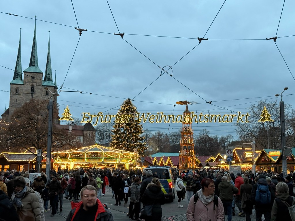 We had originally planned to stay overnight in Erfurt, but since it was still fairly early and rain was forecast for Sunday, we decided to make the three-hour drive back that night instead. Erfurt definitely deserves its own standalone trip, so I’ll be back to explore the sights—hopefully when it’s not so crowded during the Christmas market.