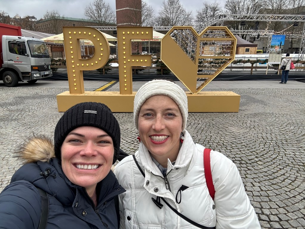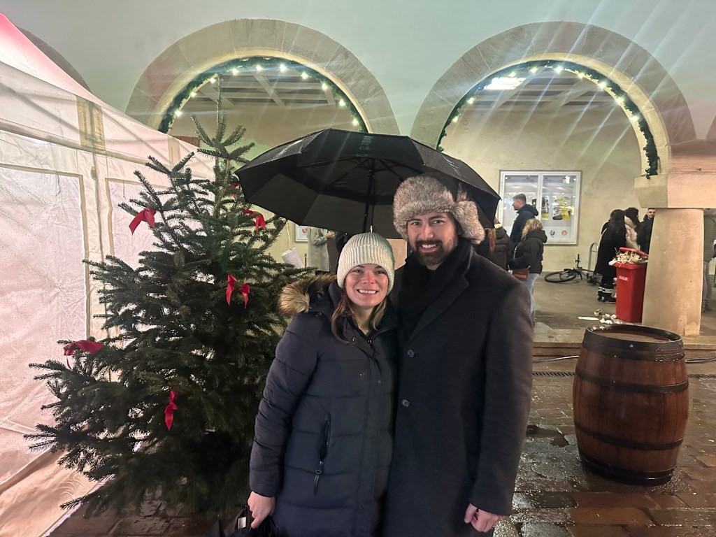 The kids were tired of Christmas markets, so they stayed at the hotel while Matt and I went to the market for dinner and a glüwein.
