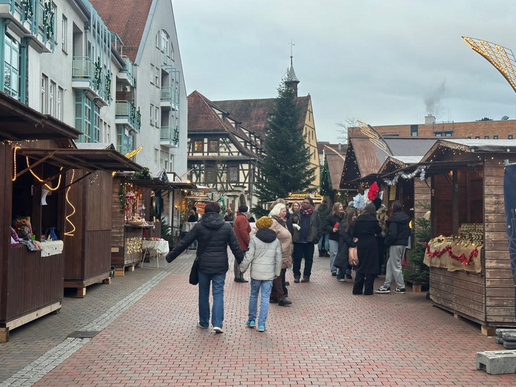 It was still early when we left Pforzheim, so we decided to check out another local market in a nearby town called Mühlacker. It’s just a small, weekend community market, so we expected it to be tiny, but we found the cutest little stalls, mostly run by school clubs selling Christmas gifts. We also found some super cute mugs!