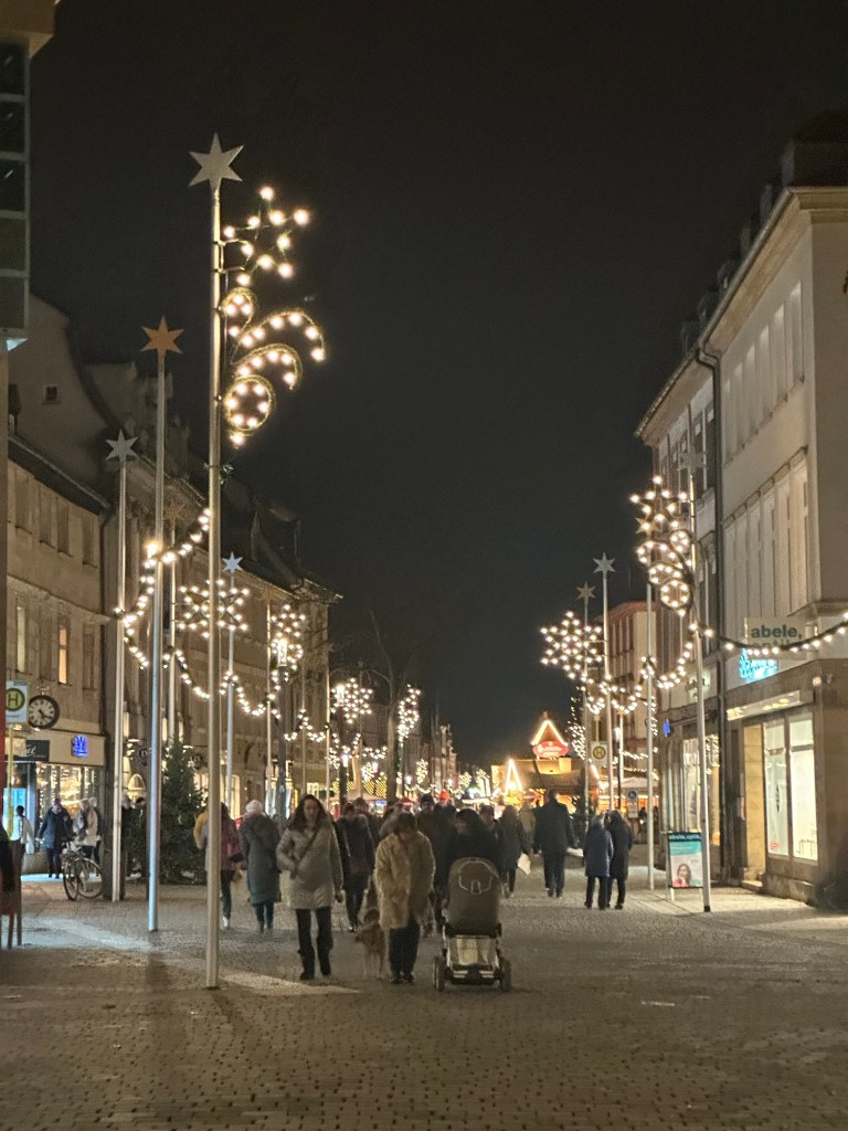 We had stopped at McDonald’s for breakfast just an hour before arriving, but we still managed to enjoy some Langos and glühwein. We even did a bit of shopping and picked up a new Christmas star before continuing on our way. Unfortunately, on the way out of Jena, I was caught by another speed camera—making it two in two days. Ugh!