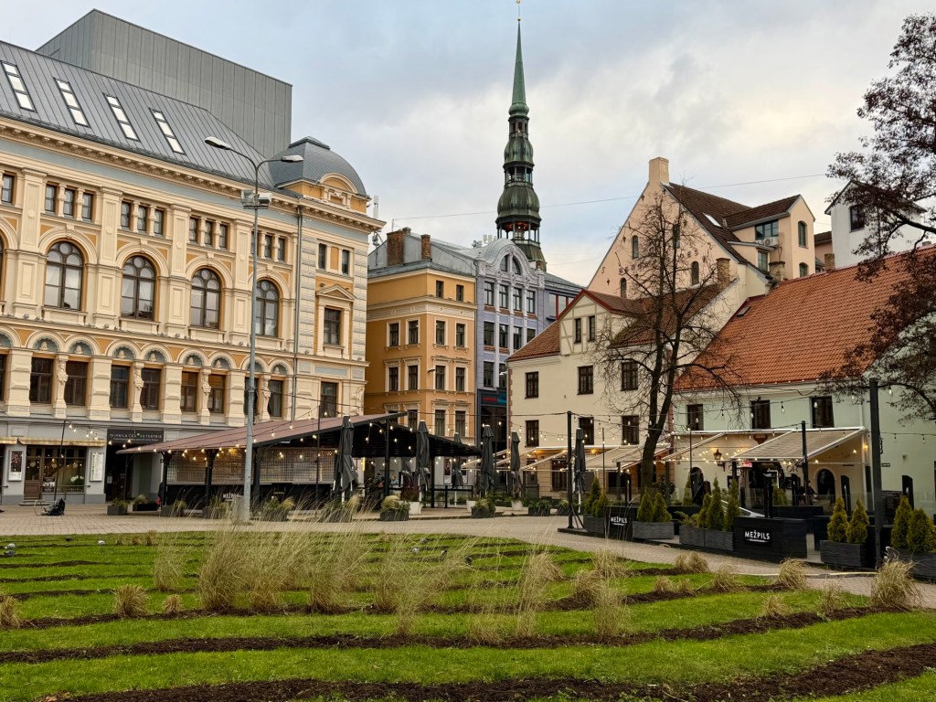 The tour guide took us all around the Old Town, showing us all the significant landmarks, including St. Anne’s Church, Bastion Hill, the Presidential Palace, the University, and the alternative community of Užupis, which I’d compare to Christiannia in Copenhagen. The tour wrapped up back at Cathedral Square. We needed a quick lunch, so we ate at a KFC where they actually had fried chicken! Afterward, we picked up our bags from the hotel and headed to the bus station for the next leg of our journey to Riga, Latvia.