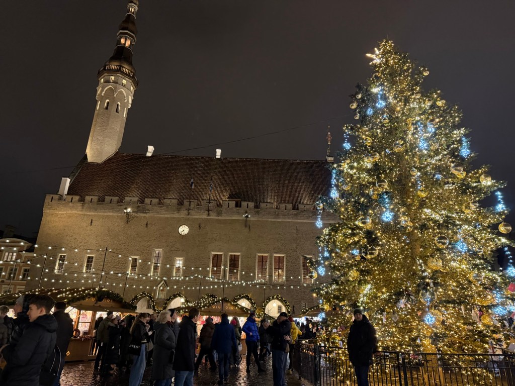 By the time we arrived at the market, it was lightly snowing, which made the whole scene absolutely beautiful. The market is right in front of Tallinn’s medieval town hall, and there was a massive Christmas tree surrounded by many beautifully decorated stalls. Matt and I both agreed it might be the prettiest market we’ve ever visited. We had two more Glöggs and then headed back to the hotel, where we had Thai food delivered for dinner and spent the rest of the evening watching TV.