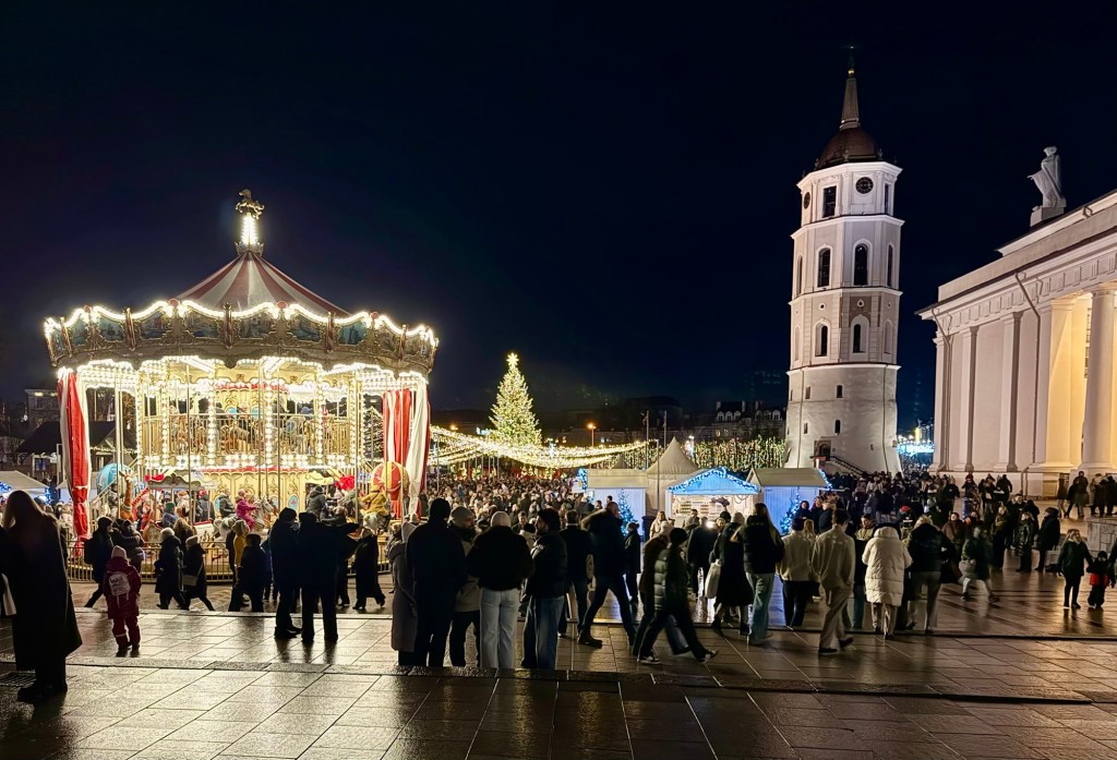 We arrived at our hotel in Vilnius around 3 p.m. With no plans for the day, we took a short nap before heading out to the Christmas market, which was still going on.
