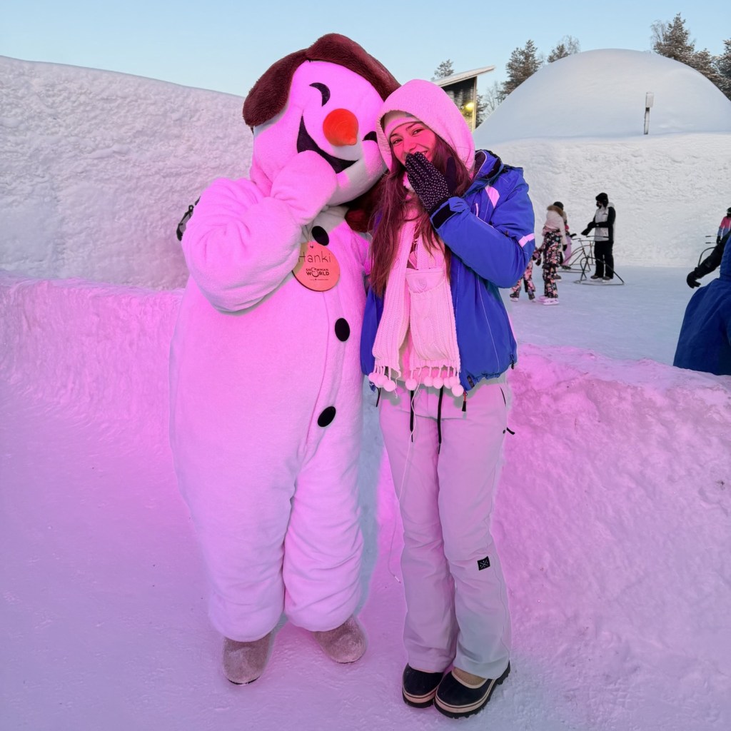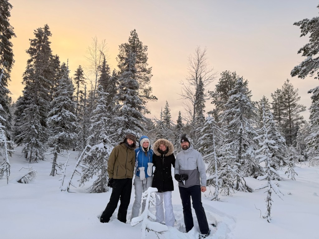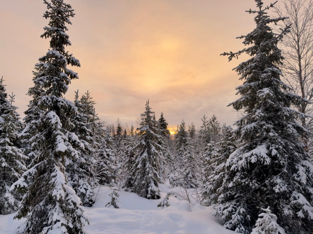 Sadly, we didn’t get to see the Northern Lights during our trip! They were actually very active while we were in Ruka and Rovaniemi—my aurora app on my phone wouldn’t stop going off—but it was so cloudy every night. We did manage to take one photo during our snowshoe hike that, when we looked at it afterward, showed some daytime aurora, even though we hadn’t noticed it in person. Luckily, we had seen the lights before on our trip to Tromsø, so we weren’t too disappointed.