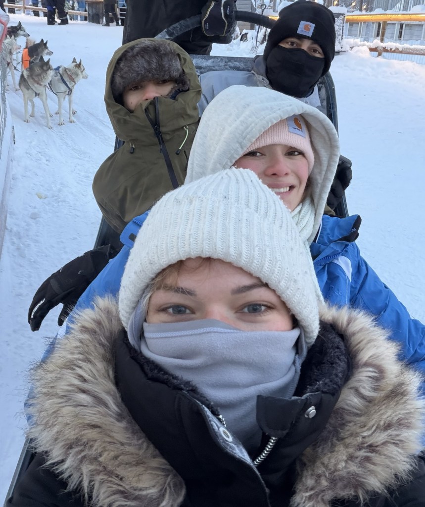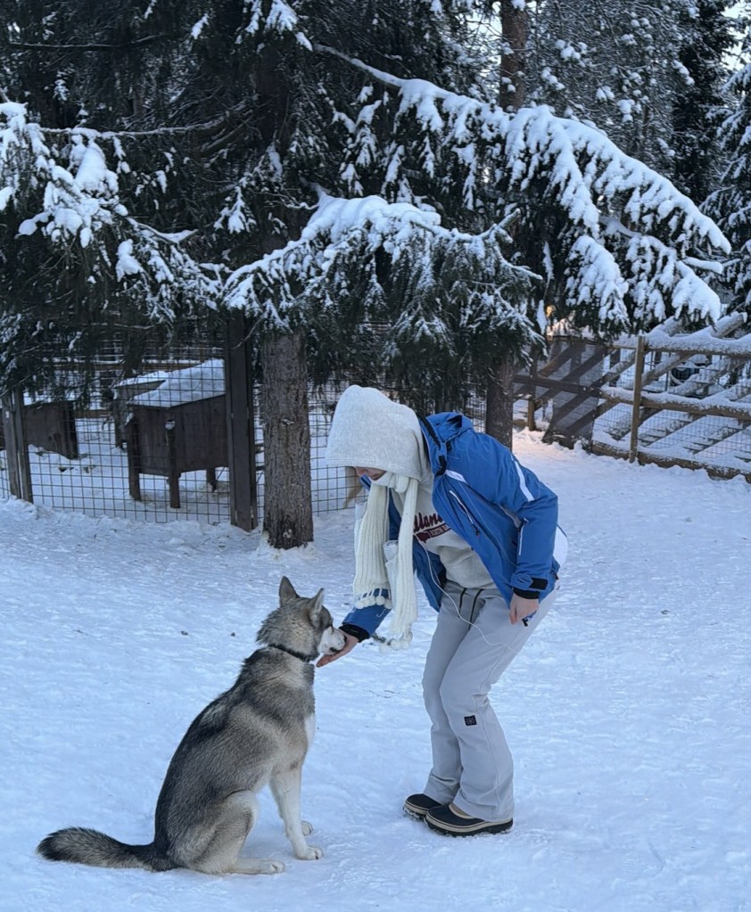 Friday was our last full day in Finland. We woke up fairly early and took a taxi to Husky Park. Our first activity was meeting a few huskies—and they were absolutely adorable!