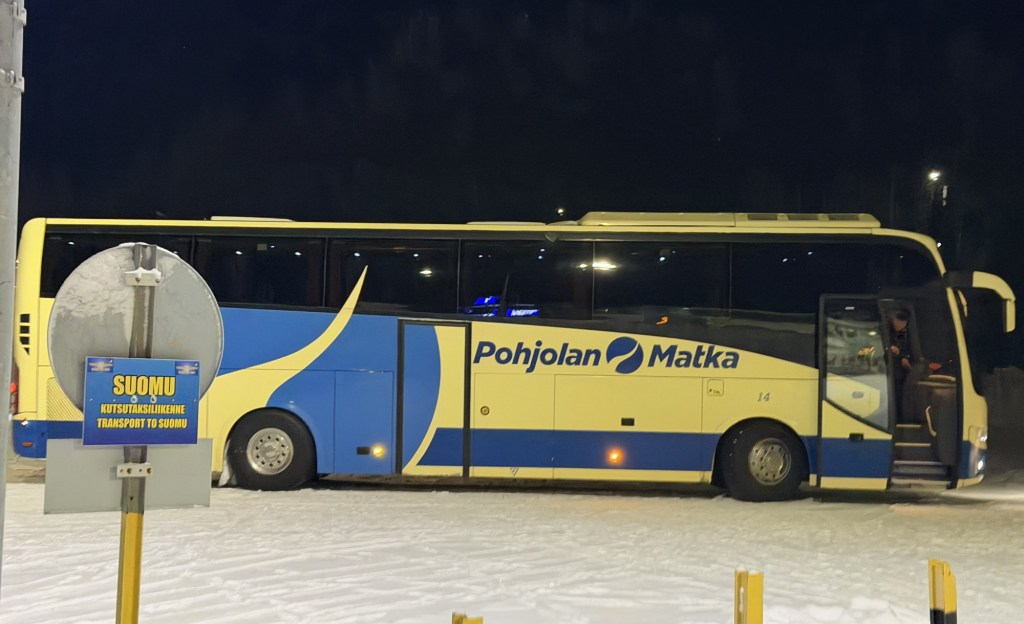 Around 4:30, we caught the public bus out of Ruka and rode for about two hours on snowy roads until we reached Kemijärvi, where we transferred to a train for another two-hour journey. I was surprised at how smooth the entire trip was. We arrived in Rovaniemi around 9 p.m., took a taxi to our Airbnb, and promptly ordered more food delivery through Bolt.