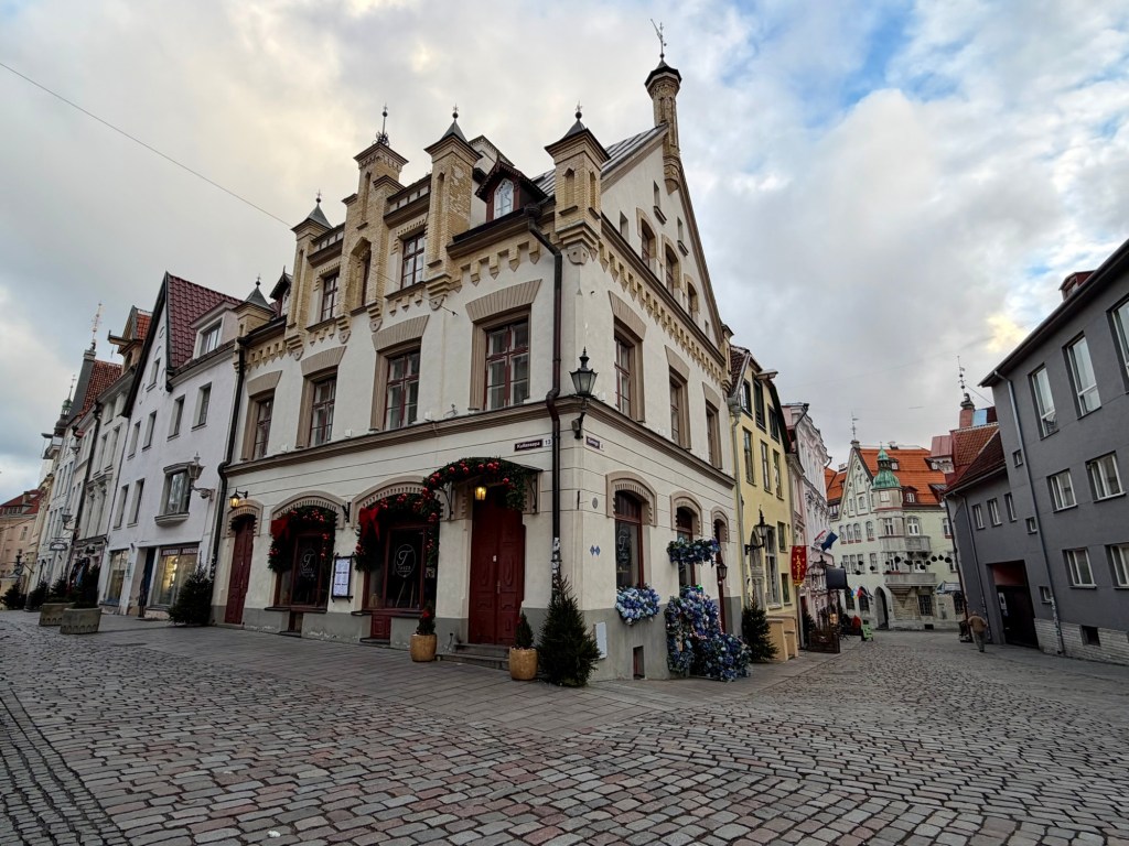 Tallinn’s Old Town is a UNESCO World Heritage site, surrounded by an almost completely intact medieval wall, with a pedestrian-only center full of charming cobblestone streets—and our hotel was located right in the middle of it all. The taxi had to drop us and our luggage on the outskirts, so we maneuvered through the snow-covered streets with our suitcases, which was quite comical.
