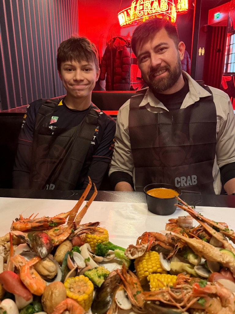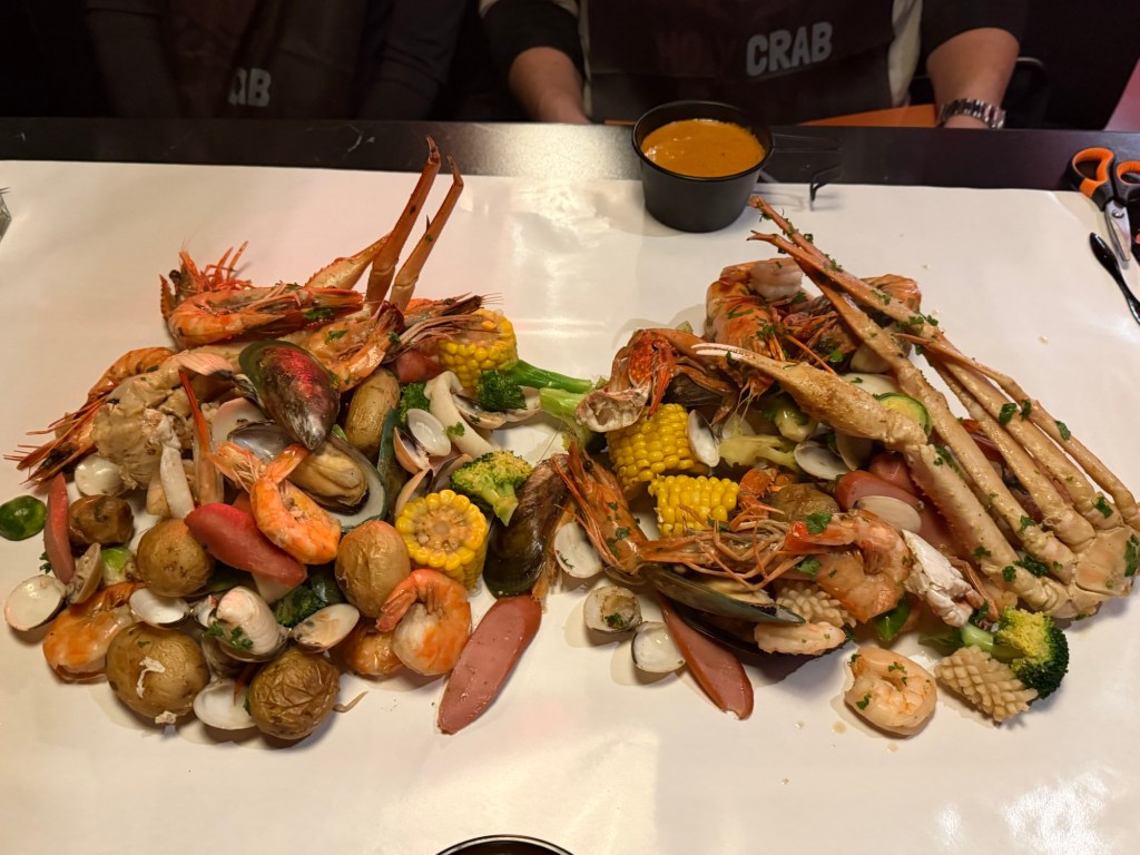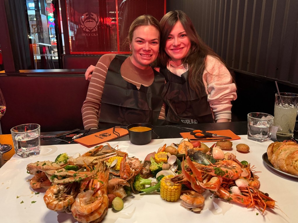 Dinner was at Holy Crab in central Helsinki. We’d had a lot of takeout meals and weren’t sure what our New Year’s Eve dinner would look like, so we decided to make this our special New Year’s meal. Holy Crab serves a table-top seafood boil packed with seafood and vegetables. I honestly didn’t think we’d be able to finish it all, but by the end of the meal, we only had a few Brussels sprouts left.