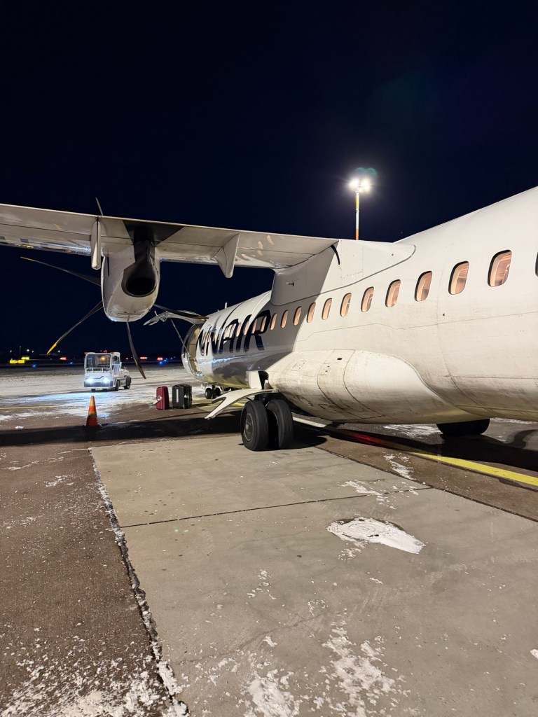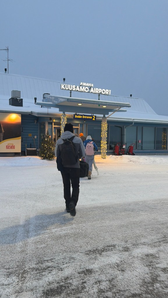 We got up early on Wednesday, New Year’s Eve, for our flight to Kuusamo. Our flight was at 8 a.m., so we left the hotel by 5 a.m. and were on one of the first flights of the day on a small turboprop plane.