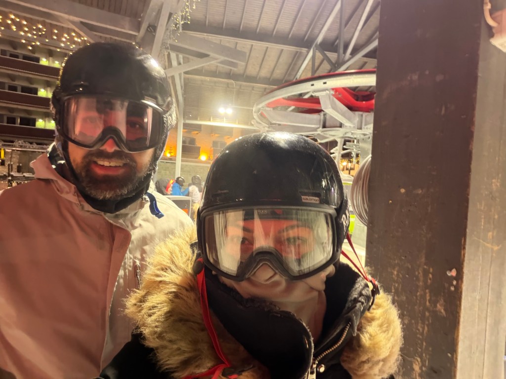 By then, it was check in time at the hotel so we decided to go back, warm up, take a nap and then ski again later. Since the slopes were completely lit, they were open later than regular slopes in the Alps which all close before sundown.