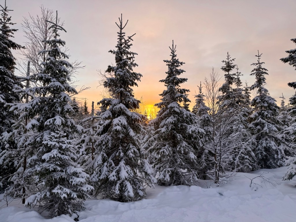 First, we were treated to the most beautiful Arctic sunrise through the snow-capped fir trees, it was stunning!