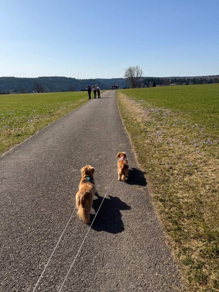 The dogs and I made a two-mile loop through the meadows, frequently stopping while fellow walkers admired them and stopped to give them pets. The dogs were worn out by the time we were finished! We took the long way home through the Teinach Valley and enjoyed a well-earned nap once we got back.