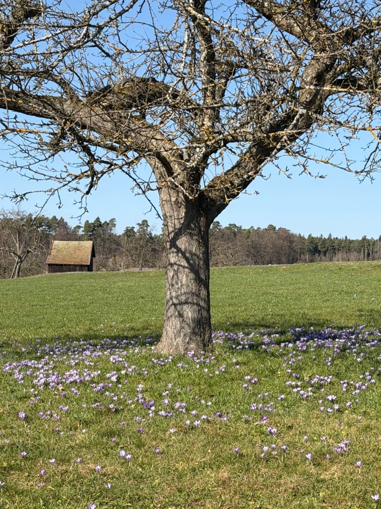 Friday was my day off, and the sun was still shining brightly with temperatures in the 60s. After sleeping in a bit, I packed up the dogs and drove to Zavelstein in the Black Forest. Zavelstein is a small village known for its rolling meadows, which turn purple in the spring when the crocuses begin to bloom.
