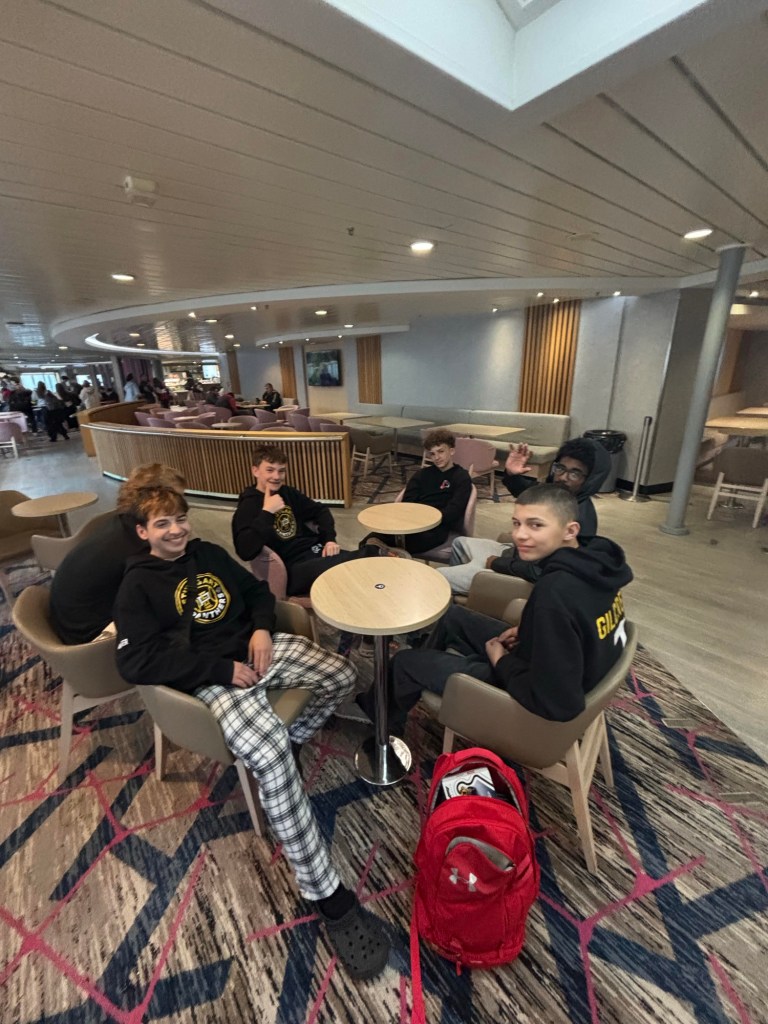 On Thursday, both kids had softball and baseball practice after school. Then they rushed home, packed their bags, and headed back out to meet the bus at 9 p.m. This time they were bound for Lakenheath, England. The trip takes about 15 hours by bus and ferry, which sounds like torture to an adult; but it’s actually the kids’ favorite trip of the year.