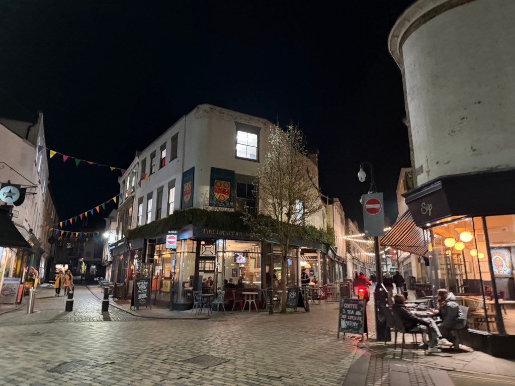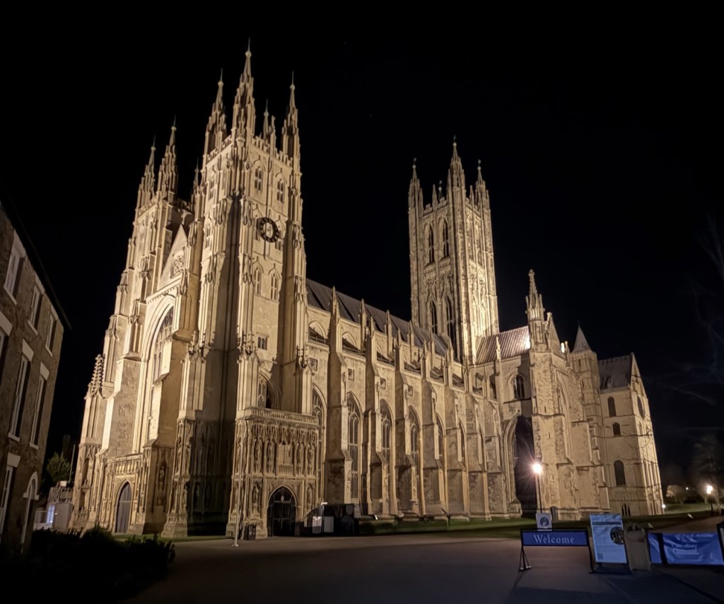 On the walk home, we wandered through the grounds of Canterbury Cathedral. Unlike many city cathedrals, this one is still enclosed within its medieval walls and buildings, but the main gate stands open. Walking through it at night felt quiet, peaceful, and honestly a little magical.