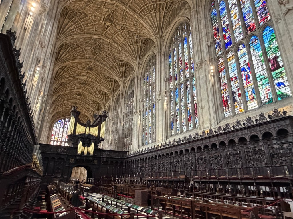 Since it was still early afternoon, King’s College was open. Somehow, it’s one of the major sights I still hadn’t seen in Cambridge, so we bought tickets and toured King’s College Chapel and the grounds. It was absolutely worth it.