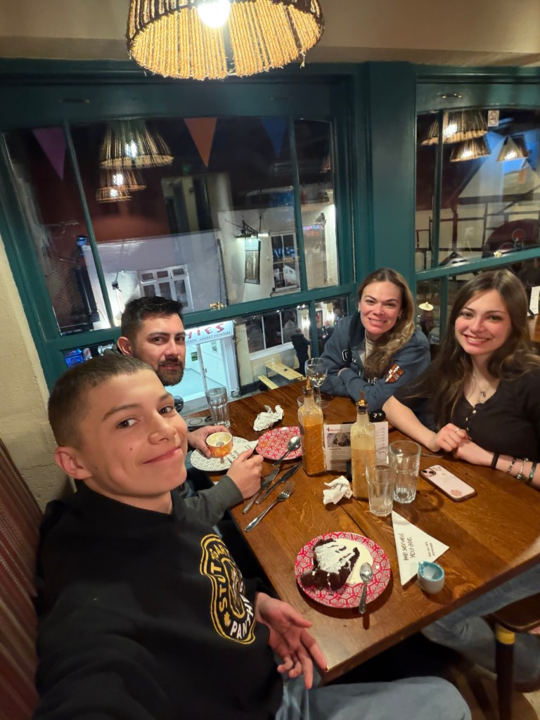 While we were eating, we checked the kids’ phone locations and realized they were nearby. Naturally, we decided to hunt them down and eventually found them… in the mall. Which felt slightly ridiculous considering they had free rein to explore Cambridge. My nerdy self would have been halfway through a historical walking tour by then. 😂 But when you travel this much, apparently the mall is just as exciting.