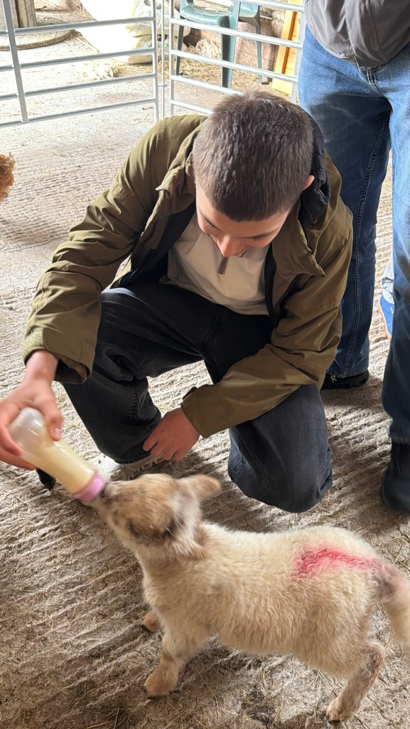 The lambs we met were not there for show. Each had been rejected by their mothers, something that can happen if a ewe is overwhelmed or has too many to care for. These lambs were being bottle-fed and raised by hand until they were strong enough to return to the flock.