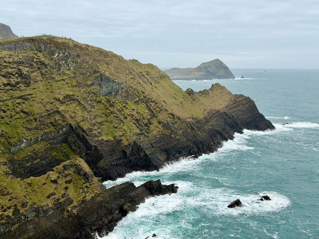 Next up was the Cliffs of Kerry. The rugged coastline stretched out before us, waves crashing far below. Unlike some of the more famous viewpoints, it felt peaceful and uncrowded, especially compared to the Cliffs of Moher just a little further to the north.